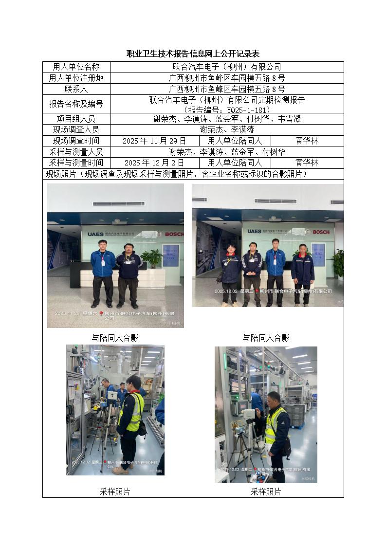聯(lián)合汽車電子(柳州)有限公司職業(yè)病危害因素定期檢測信息公開
