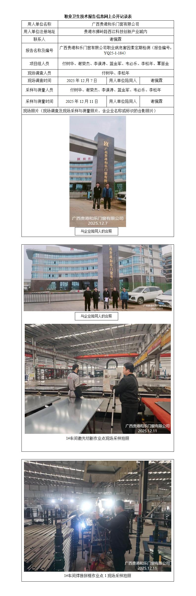 廣西貴港和樂門窗有限公司職業(yè)病危害因素定期檢測(cè)