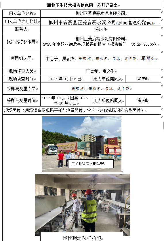 柳州正菱鹿寨水泥有限公司 2025年度職業(yè)病危害現(xiàn)狀評(píng)價(jià)報(bào)告